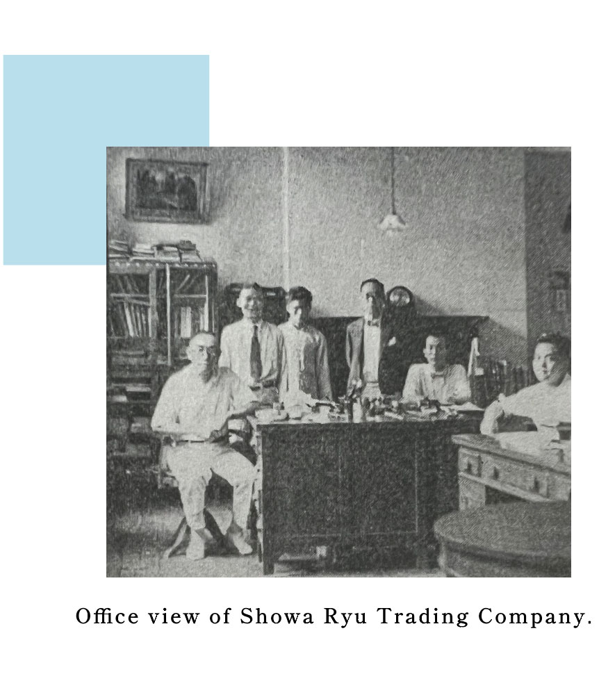 The Shanghai Branch was opened in 1936 to promote trade with China. While exporting chemicals, dyes, intermediates and miscellaneous goods from Japan, it also imported products such as grains and tea from China and sold them in Japan. In 1939, as business picked up steam, the branch was reorganized as a local subsidiary and renamed Showa Ryu Trading Company.