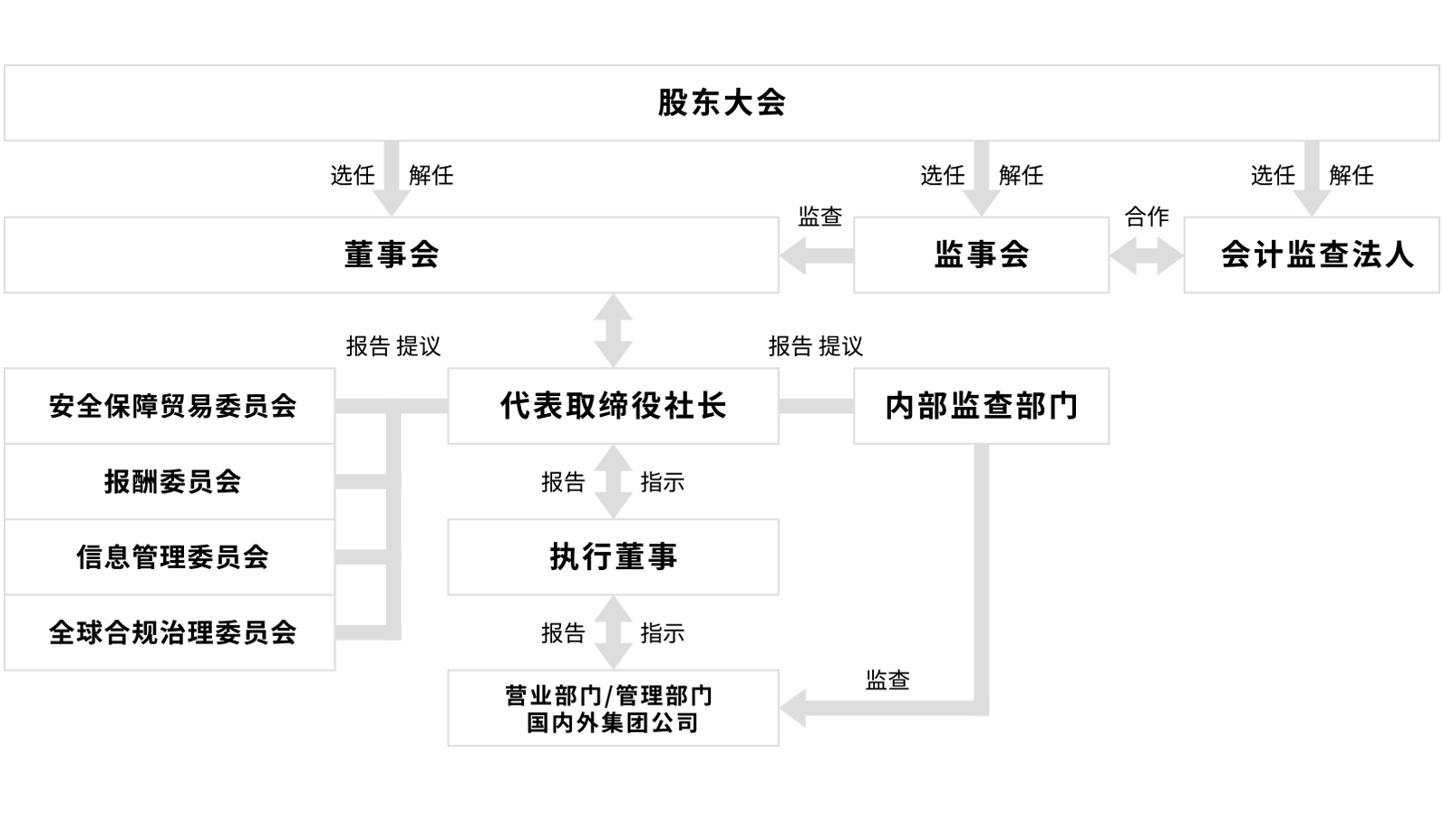 ・各委员会以及与此相应的会议机构的职责 在最高管理层的监督下,积极致力于在组织内解决课题。此外,还将定期向经营层报告其活动内容。