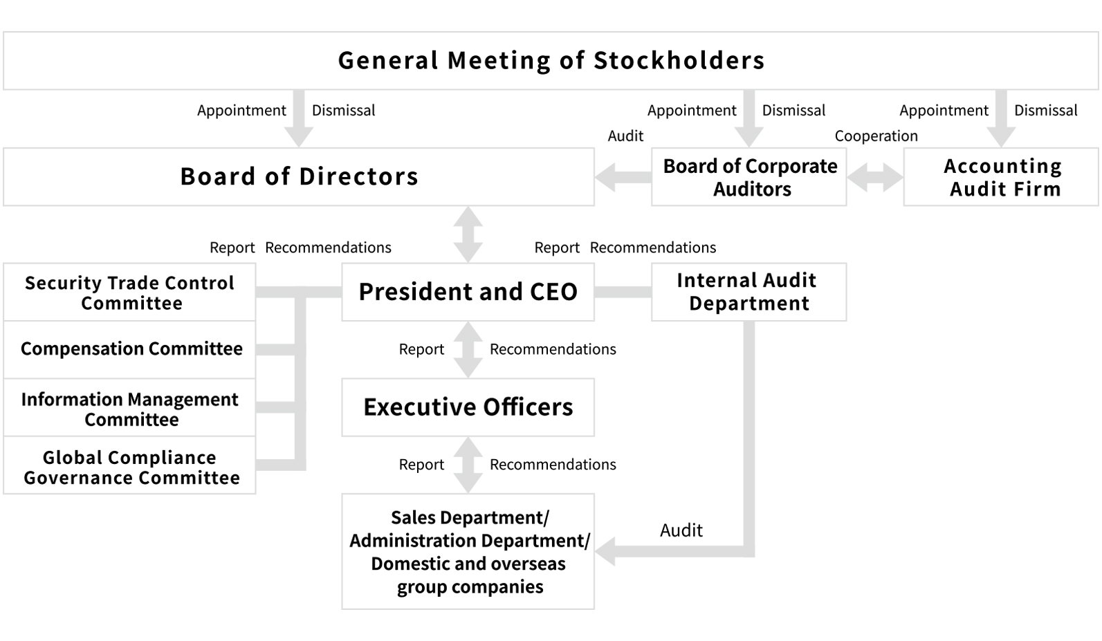 ・Roles of Committees and Similar Bodies Under the supervision of top management, these bodies strive to resolve issues within the organization. They also regularly report the results of their activities to management.