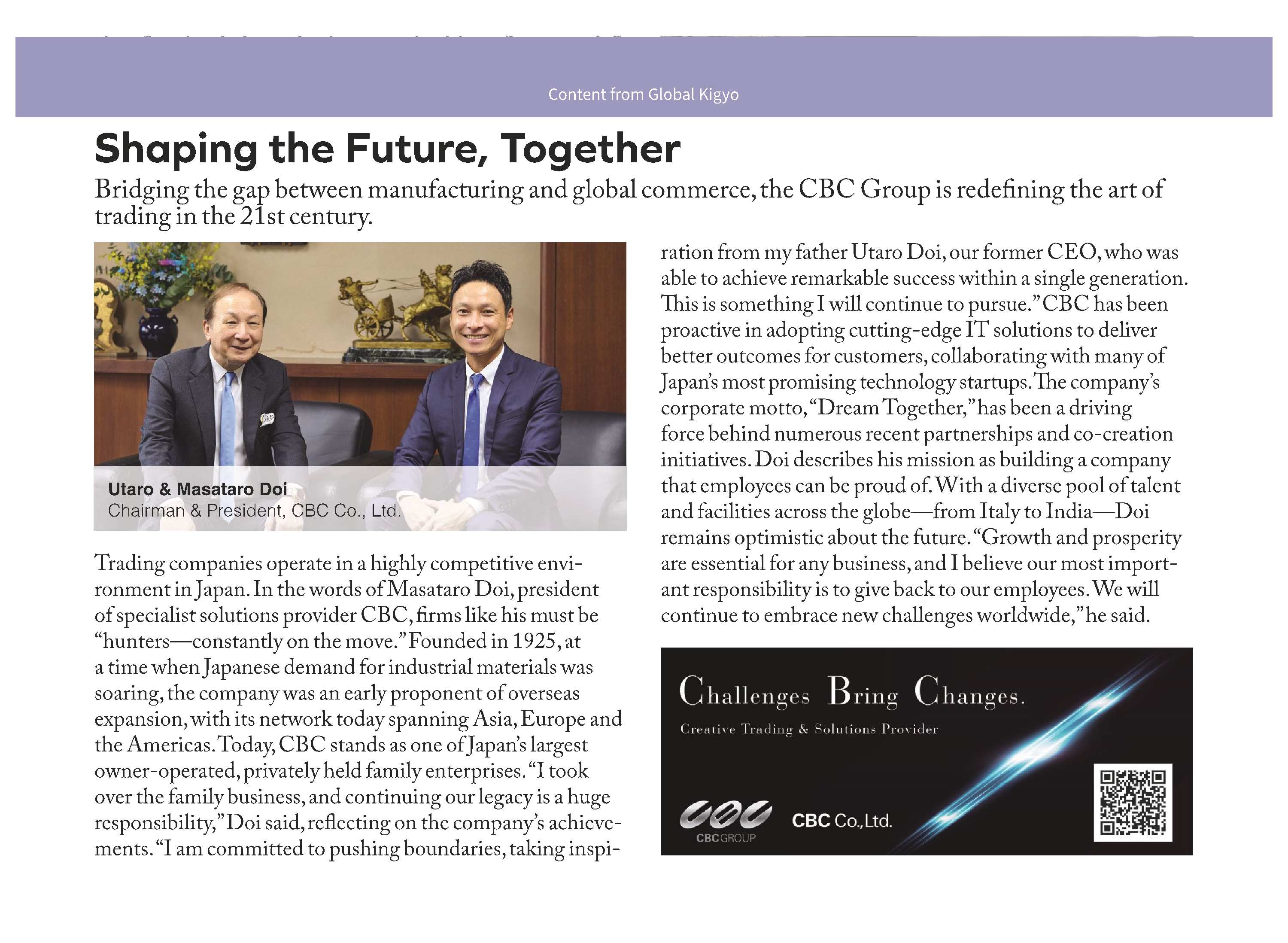 弊社社長 圡井正太郎に取材いただき、Time(アジア版)にCBCに関する記事が掲載されましたので是非ご覧ください。